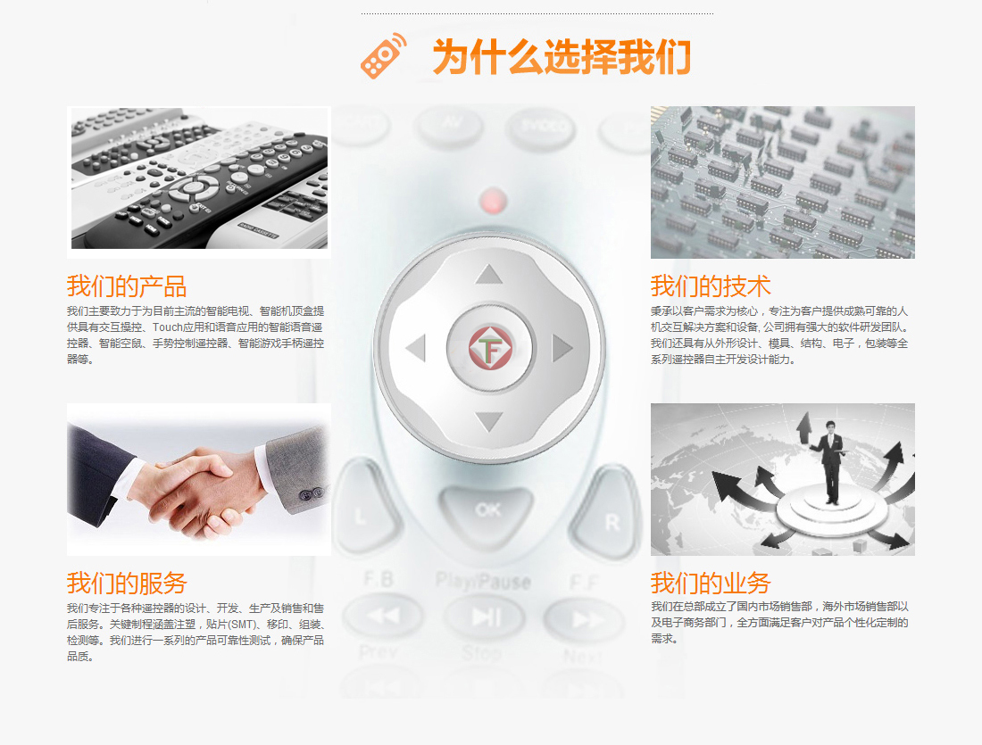 天長市天昊電子有限公司創建于1996年,位于長江之濱的電子產品之鄉天長市,南接古城南京,東與揚州相鄰,地處充滿活力的“長三角”經濟圈,有著良好的投資與發展環境。公司多年來一直致力于遙控器的開發、設計與生產,創造以人為本的健康生活環境。 天長市天昊電子有限公司以其設計的新穎、技術的創新、優良的品質、專業的制造,被國外內的諸多家電生產企業(公司)推崇。 公司堅持創新是企業的未來,始終注重技術研發和儲備;公司秉承務真求實的理念,始終嚴格執行6S管理模式,公司堅持人才是企業的高度,逐步打造了一支團結拼搏的員工團隊;天昊電子通過20年電子產品的生產,對行業產品的應用問題解決積累豐厚的經驗…… <了解詳情>